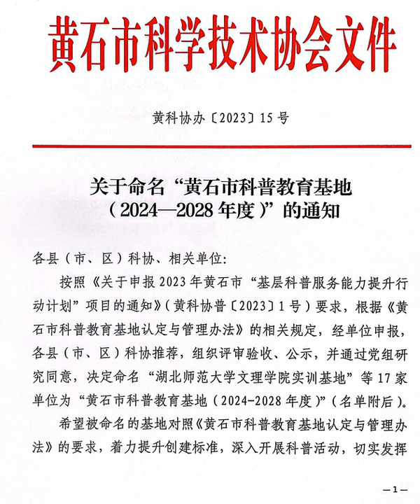 本网讯(通讯员 杨海梅)黄石市科协办近日发文,公布了“关于命名黄石市科普教育基地(2024—2028年度)的通知(黄科协办〔2023〕15号)”,黄石市共17家基地入选,乐鱼网站_乐鱼(中国)实训基地均入选在列。