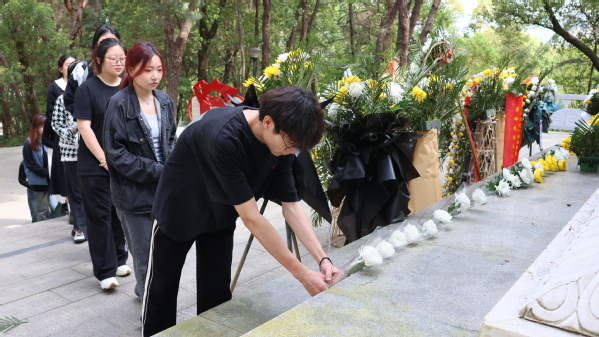 最后,学子们手捧鲜艳的菊花,绕纪念碑一周,向人民英雄表达无限敬仰。