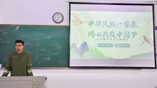 本网讯(图 黄依娜 文 翁典典)共绘同心圆,同筑中国梦。4月17日晚,乐鱼网站_乐鱼(中国)教育与艺术学部召开“中华民族一家亲,同心共筑中国梦”主题班会。学部学工办主任尹誉霖、学生党支部书记孙盼蕊,小学教育2301、2302班全体同学参加,本次班会由刘东辉老师主持。