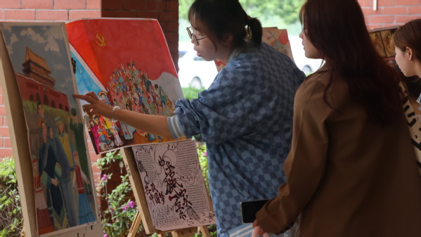 此次展览,共展出60余件以中华民族文化为内容的作品,这些作品主题昂扬、格调高雅、风格多样、各具特色,既有反映各民族风土人情的画作,也有展现民族团结进步的感人故事,同学们用自己的笔墨,把“民族团结”编成文、绘成画,让中华民族共同体意识,在春风化雨、润物无声中入脑入心。展览吸引了众多师生驻足观赏。