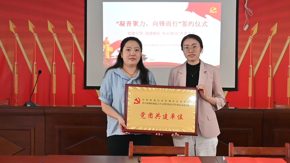 陈荟芸和易姣共同为“党团共建单位”揭牌。