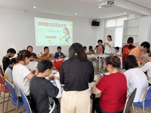 紧接着的“手工花卉,爱意传递”工作坊,成为全场的亮点。在志愿者张煜晨的悉心指导下,大人小孩齐动手,彩纸翻飞,丝带轻绕,一束束饱含深情的手工花卉逐渐成型。这些非比寻常的花朵,虽由纸张与布料编织,却承载着子女对母亲无尽的敬爱与感激,成为了献给母亲的最佳节日礼赞。