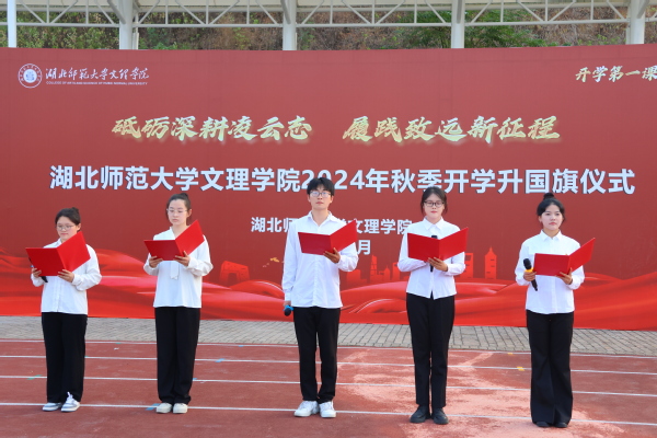 据悉,本次升旗仪式学生代表张燕以《凝心铸魂强根基,笃学善思启新程》为题进行国旗下讲话,经济与管理学部学生还带来了朗诵《青春中国》和合唱《我和我的祖国》。