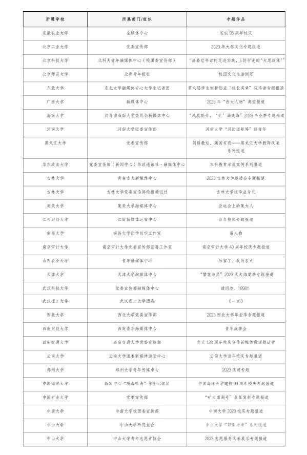 3、2023-2024年度优秀校园新闻专题作品(60件)     (排名不分前后)