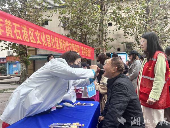 义诊服务区域更是备受关注。弘康中医院的中医为居民进行把脉和血压测量;中山口腔医院的医生们认真地为居民进行牙齿检查和预约免费洗牙服务;黄石爱康医院的呼吸及心脑血管医疗团队也展现出了专业与关爱,为55岁以上吸烟或有呼吸问题的患者免费检查肺功能,为长期或急性头疼、头晕的居民以及有心血管疾病、肥胖体重的居民进行现场检查,并提供相应的医疗方案。华阿姨感叹:“在家门口就能享受这么全面的义诊服务,真是太方便了,给社区点赞!”