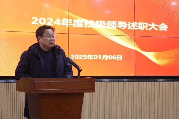 李咏成在介绍完本次考核的目的和要求后,五位考核对象依次进行述职。常务副校长杨学斌全面总结2024年学校行政工作,并对2025年的工作进行部署。党委书记杨邓红系统总结了2024年学校党务工作,进一步部署2025年的党建和思想政治工作。党委副书记杨之毛、副校长张志华、副校长王胜国分别就各自分管工作,总结了2024年取得的成绩,介绍了2025年的工作目标。