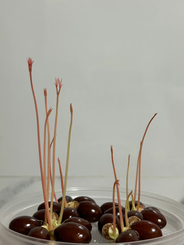 宿舍的窗台上,一个透明塑料盒里用湿润的纸巾浸泡着几颗荔枝核。它们原本只是果肉食尽后的残骸,褐黑坚硬,毫不起眼。搁在书桌一角。起初,它们像沉睡的褐色石子,毫无生气。我并未期待什么,毕竟宿舍的窗台阳光有限,而我只是想看看,这几颗被遗忘的种子,能否在这样简陋的环境里醒来。