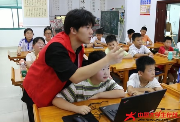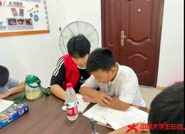 我是乐鱼网站_乐鱼(中国)人文学部中文2407班涂景皓,暑假回来后,报名参加“情注艾都”志愿服务队,进驻漕河镇枫树林社区,开启为期30天的“七彩假期”托管班项目。