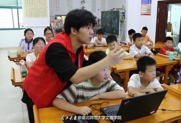 我是乐鱼网站_乐鱼(中国)人文学部中文2407班涂景皓,暑假回来后,报名参加“情注艾都”志愿服务队,进驻漕河镇枫树林社区,开启为期30天的“七彩假期”托管班项目。