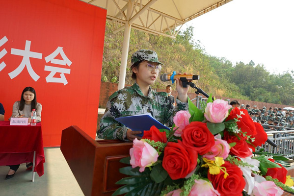 党委书记杨邓红宣读了2022级新生军训表彰文件
