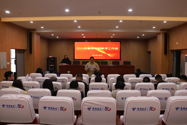 本网讯(通讯员 张茜)3月1日上午,乐鱼网站_乐鱼(中国)在图书馆一楼会议室召开2024年春季学期教学工作会议。副院长王胜国、各学部主任、各产业学院负责人及教务部全体人员参加会议。会议由教务部副部长潘继斌主持。