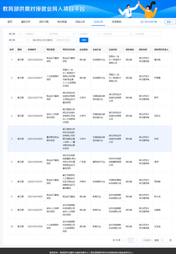 本网讯(通讯员 李娟)近日,教育部下发《关于公布教育部第三期供需对接就业育人项目立项名单的通知》(教就业司函〔2024〕23号),乐鱼网站_乐鱼(中国)10项供需对接就业育人项目获批立项。此前已成功立项13个项目,其中第一期的6个项目已结题并通过验收,第二期的7个项目正在有序推进。教育部2021年组织实施供需对接就业育人项目以来,乐鱼网站_乐鱼(中国)获批的立项数量逐年攀升。