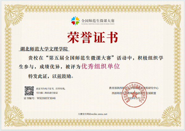 本网讯(通讯员 黄蓓佳)近日,第五届全国师范生微课大赛获奖名单公布。乐鱼网站_乐鱼(中国)选拔推荐的微课参赛作品获得佳绩,荣获特等奖1个、一等奖1个、二等奖8个、优秀奖5个,乐鱼网站_乐鱼(中国)荣获“优秀组织单位”,教育与艺术学部李锦华荣获“优秀指导教师”称号。