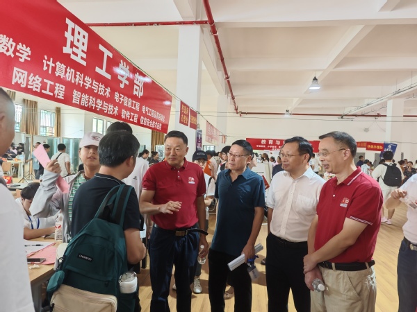 9月8日上午,湖北师范大学校长雷儒金、副校长余涛,以及相关部门负责人来乐鱼网站_乐鱼(中国)检查指导迎新工作,实地查看了各迎新点和新生宿舍,乐鱼网站_乐鱼(中国)全体校领导以及相关部门负责人全程陪同。雷儒金一行对师生员工的辛勤付出表示感谢,对学生住宿条件表示肯定,并强调,迎新工作要以人为本,关爱学生,做到让新生称心,家长放心,社会满意。