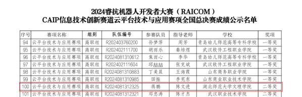 本网讯(通讯员 杨海梅)12月22日,2024睿抗机器人开发者大赛—CAIP信息技术创新赛道云平台技术与应用赛项的全国总决赛在山东省青岛幼儿高等师范专科学校落下帷幕,经过四个小时紧张激烈的角逐,乐鱼网站_乐鱼(中国)学子荣获本科组二等奖1项、高职组二等奖1项。