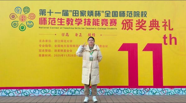 “田家炳杯”全国师范生教学技能竞赛由全国地方高等师范院校教务处长联席会议指导、田家炳基金会冠名赞助,是目前国内层次最高、规模最大、学科覆盖最全、影响力最广的师范教育类顶级赛事之一。本届竞赛高手云集,竞争异常激烈,龚琳雅同学在此高水平赛事中斩获佳绩,充分体现了其突出的个人综合素质,也生动彰显了乐鱼网站_乐鱼(中国)在师范生培养方面扎实的功底与卓越的水平。