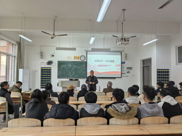 院长程永山对同学们在备考期间展现的刻苦努力和坚韧精神给予充分肯定,并结合当前考研形势提出三点期望:一是树立必胜信心,沉着应对挑战;二是保持平常心态,稳定发挥水平;三是坚守进取之心,追求长远发展。他特别强调:“诚信是立身之本,考试成绩固然重要,但诚信品格更为珍贵。”党总支副书记肖圣芳从生活细节出发,叮嘱同学们注意调节心理状态、合理安排作息,确保以饱满的精神和健康的体魄迎接考试。