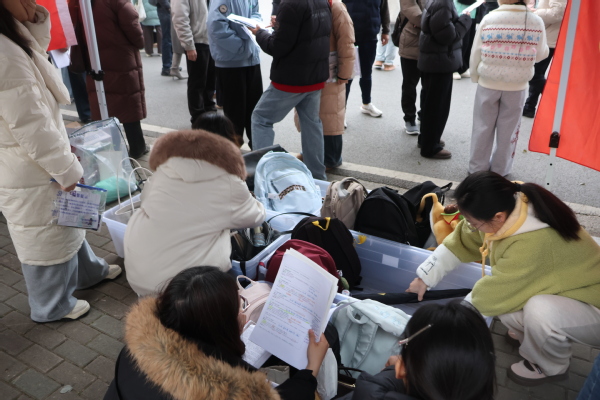 天色微明,大巴车灯在晨雾中划出温暖的光路。送考教师手持名单,在车门前逐一核对学生信息,确保每位考生顺利登车。在湖北师范大学考研服务点,志愿者实时解答考场位置、路线指引等疑问,协助考生看管随身物品、整理备考资料;提前备好的暖贴和文具袋被细心分装,方便考生按需取用。老师们化身“暖心护航员”,逐一提醒考生检查身份证、准考证等重要证件,并细致叮嘱答题规范、时间分配及防寒保暖等注意事项,并以“放平心态、沉着应战,相信付出的努力终将收获回报”等话语为学子加油打气,缓解他们的紧张情绪。