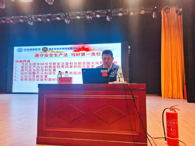 本网讯(通讯员涂亦乐)切实增强师生的消防安全意识和自防自救能力,保障师生的生命财产安全。4月17日,学校后勤保卫部联合学工部学术交流中心报告厅开展了消防安全知识专题讲座,湖北省楚防火中心姜俊杰宣教员应邀来校作辅导报告。学校600余名师生代表聆听了讲座。