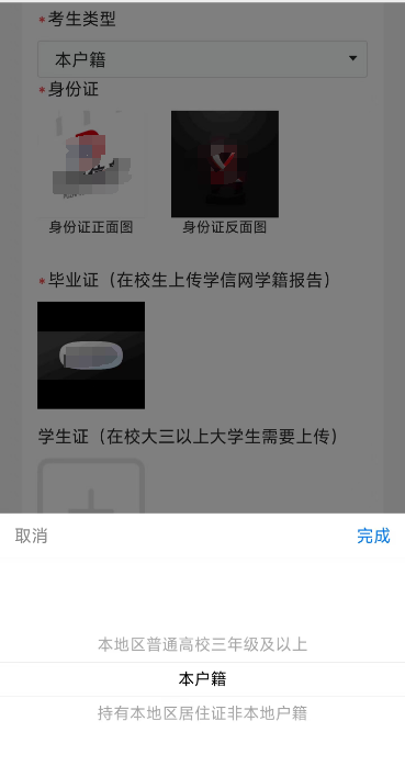 7.选择考生类型,并上传对应的图片材料,以便审核资料