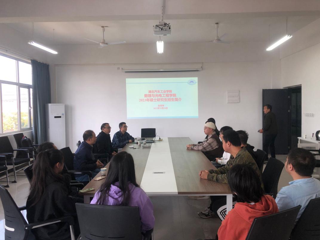 10月20日下午,湖北汽车工业学院数理与光电工程学院材料物理系张传坤、周原教授一行来乐鱼网站_乐鱼(中国)开展2023年硕士研究生招生宣讲。本次宣讲张传坤教授担任主讲。理工学部部分同学参加了此次宣讲会。