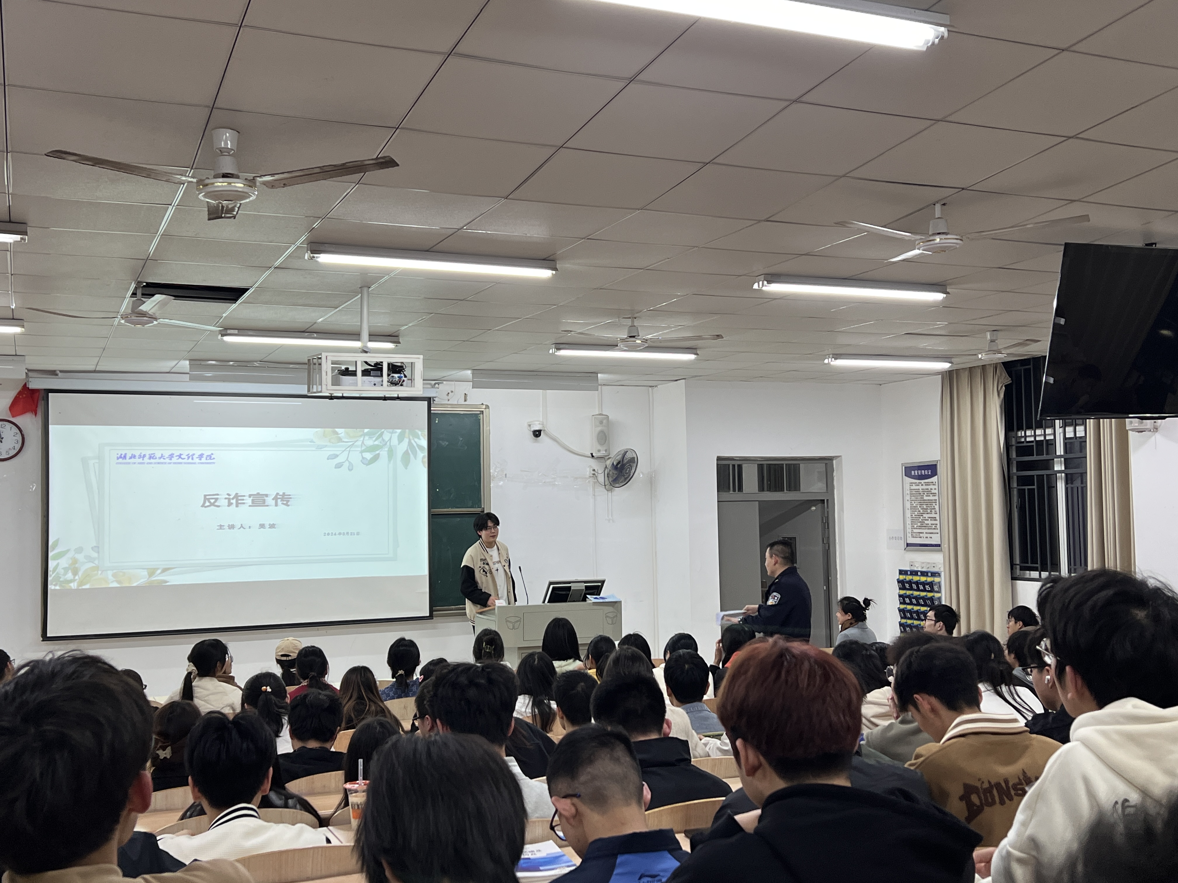 为深入推动乐鱼网站_乐鱼(中国)创建平安校园工作,不断提升广大师生防诈意识和防骗能力,3月21日晚上7时,理工学部特邀汪仁派出所民警在教学楼1B-101,为约200名青年学子举行了“反电信诈骗”主题讲座,理工学部团总支副书记李哲昊老师,辅导员刘婉婉老师、胡兰捷老师、陆曦老师参加了活动。