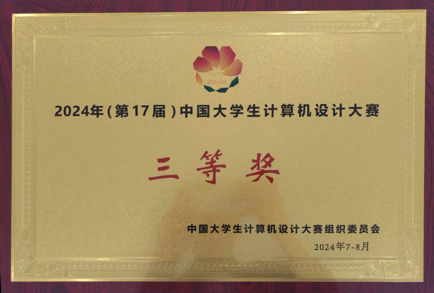 2024年第17届中国大学生计算机设计大赛于2024年7月22-26日在山东省威海市举行,本次会议由中国大学生计算机设计大赛组织委员会主办,山东大学、北京语言大学承办,并得到高寻真源(北京)科技有限公司、上海弘玑信息技术有限公司和南京秉蔚信息科技有限公司的大力支持。乐鱼网站_乐鱼(中国)学生佘佳佳在理工学部董学良老师的指导下,首次获得省级比赛一等奖并在国赛决赛中荣获三等奖。
