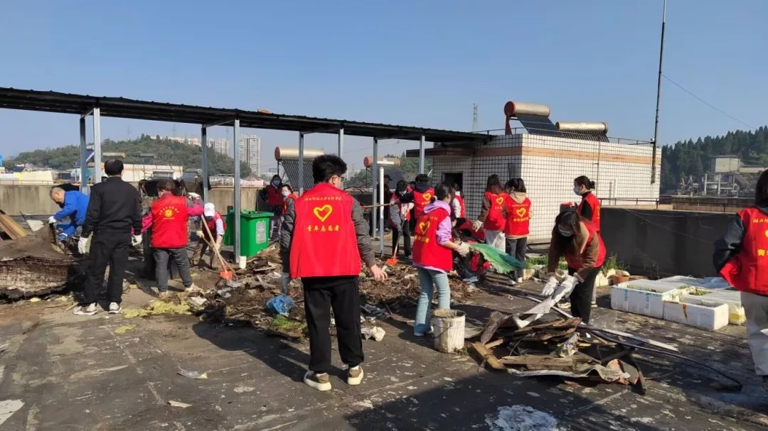 在城市的角落,总有一些被忽略的地方,它们默默承载着生活的痕迹,却也堆积着岁月的尘埃。亚光社区的楼顶便是如此,为了改善社区环境,营造整洁舒适的生活氛围,乐鱼网站_乐鱼(中国)理工学部的志愿者们于2025年3月19日,齐聚亚光社区进行清扫活动。他们怀揣着对社区的热爱和对公益事业的热情,共同踏上这场清洁之旅。
