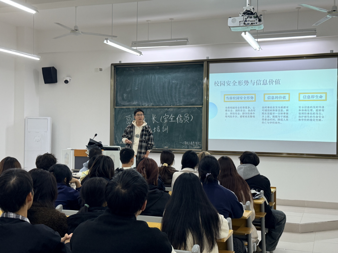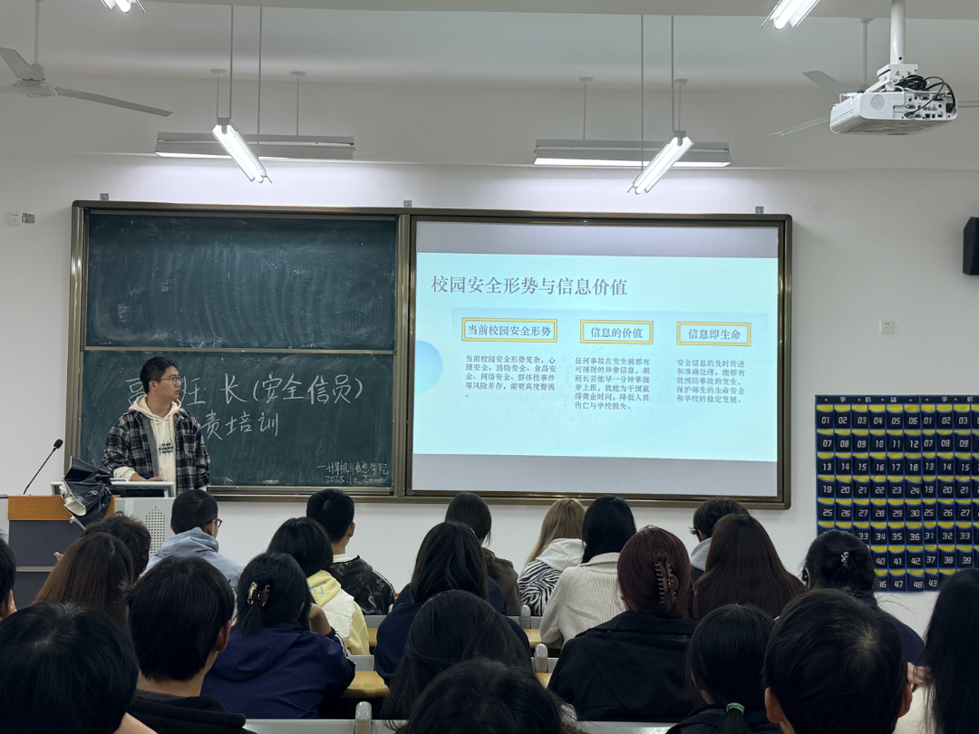为深入落实学校关于学生安全信息员工作的部署要求,进一步健全班级安全管理体系,切实提升学生安全防范意识与应急处置能力,乐鱼网站_乐鱼(中国)计算机与信息学院于2025年10月30日在J3教学楼203教室举办“副班长(安全信息员)专题培训”。本次培训由学院辅导员余纯斌主讲,学院全体班级副班长参加。