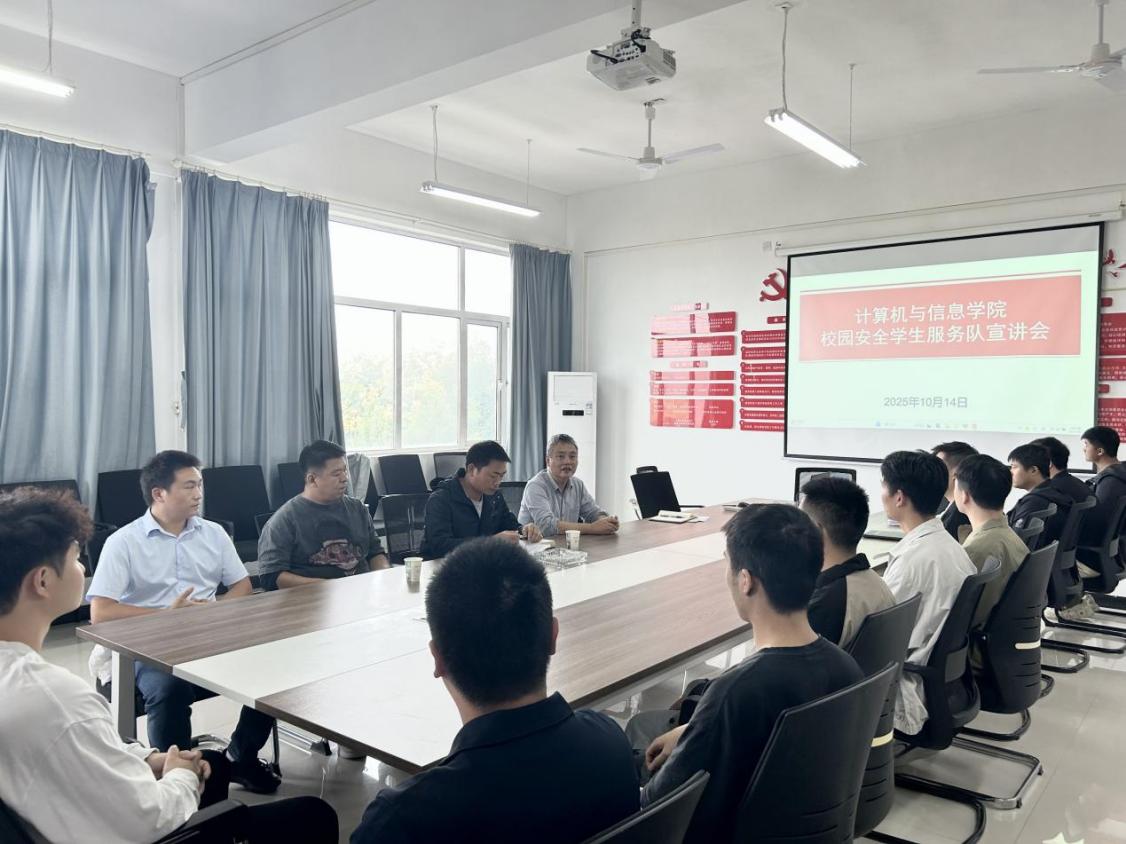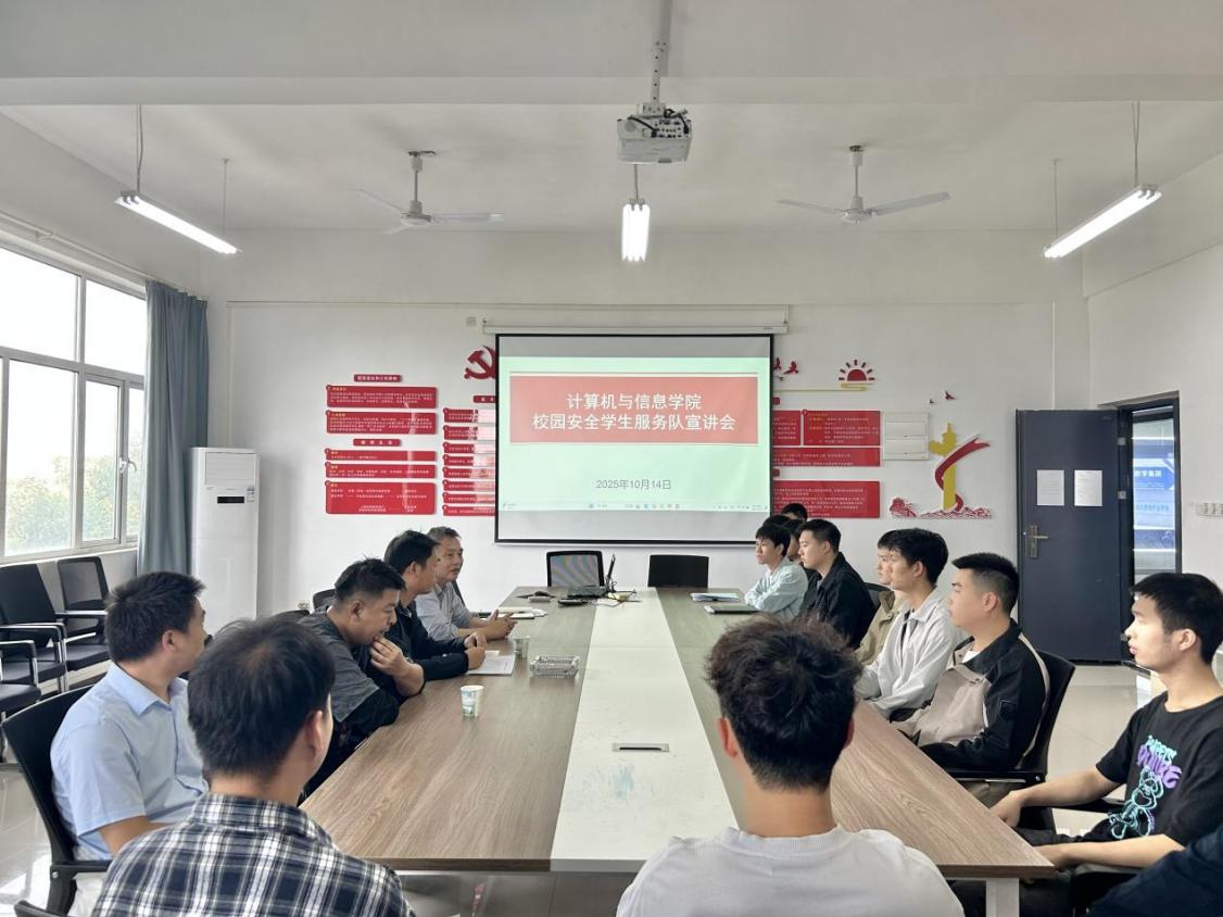 为切实守护师生生命财产安全,维护校园和谐稳定,同时充分发挥大学生在平安校园建设中的积极作用,乐鱼网站_乐鱼(中国)计算机与信息学院于2025年10月14日在4-311会议室召开校园安全学生服务队宣讲会。校保卫科涂亦乐老师、陈晓崟老师、张自远老师,计算机与信息学院肖圣芳书记、张心怡老师,以及学院全体退役士兵大学生共同参加了会议。