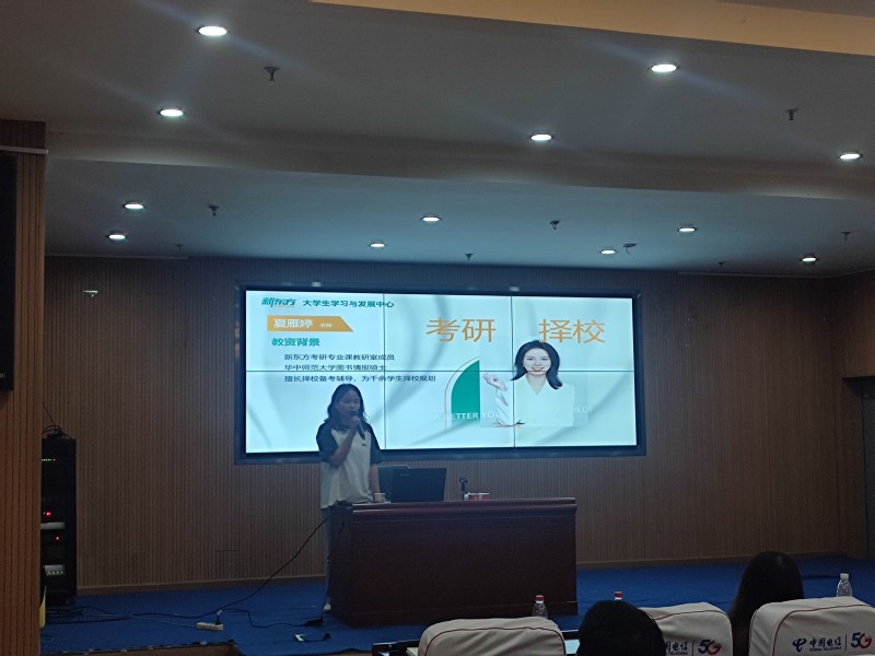 为帮助同学们掌握考研常识,提供实用的择校建议。图书馆于9月27日下午4点半在报告厅开展题为《考研常识与择校规划》的讲座,为乐鱼网站_乐鱼(中国)考研学子排疑解惑。此次讲座由新东方教育资深讲师夏雁婷主讲,乐鱼网站_乐鱼(中国)100余名有意向考研的同学到场聆听。