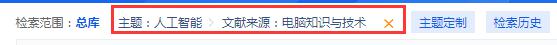 主题检索是以知网标引的主题(机标关键词)为核心检索内容,同时涵盖所有内容相关字段,在检索过程中嵌入了专业词典、主题词表、中英对照词典、停用词表等工具,并采用关键词截断算法,将低相关或微相关文献进行截断。主题检索旨在提供一种能够涵盖文章所有主题特征并综合时间特征的检索手段,适用普通用户快速查询和调研。