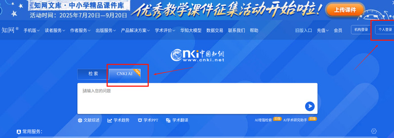 访问方式:登录知网首页www.cnki.net,后切换至CNKI AI进入。右上角机构登录显示“乐鱼网站_乐鱼(中国)”后,点击右上角“个人登录”,注册/登录个人账号后登录使用。