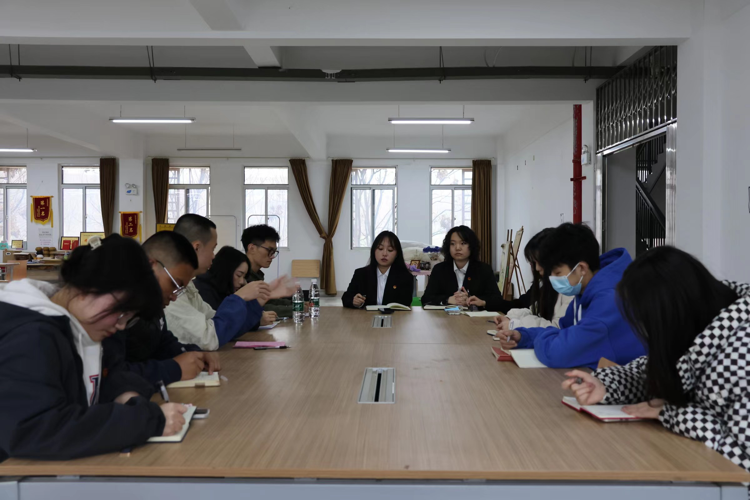 会议第四项,学生工作部招生宣传媒体中心指导老师肖宏明总结讲话,他提出两校的学生干部需以行则将至的决心和作则必成的信心铆足四股劲:一是练就本领,宝剑锋从磨砺出的拼劲;二是保持定力,咬定青山不放松的韧劲;三是胸怀大局,敢教日月换新天的闯劲;四是志存高远,不破楼兰终不还的冲劲。