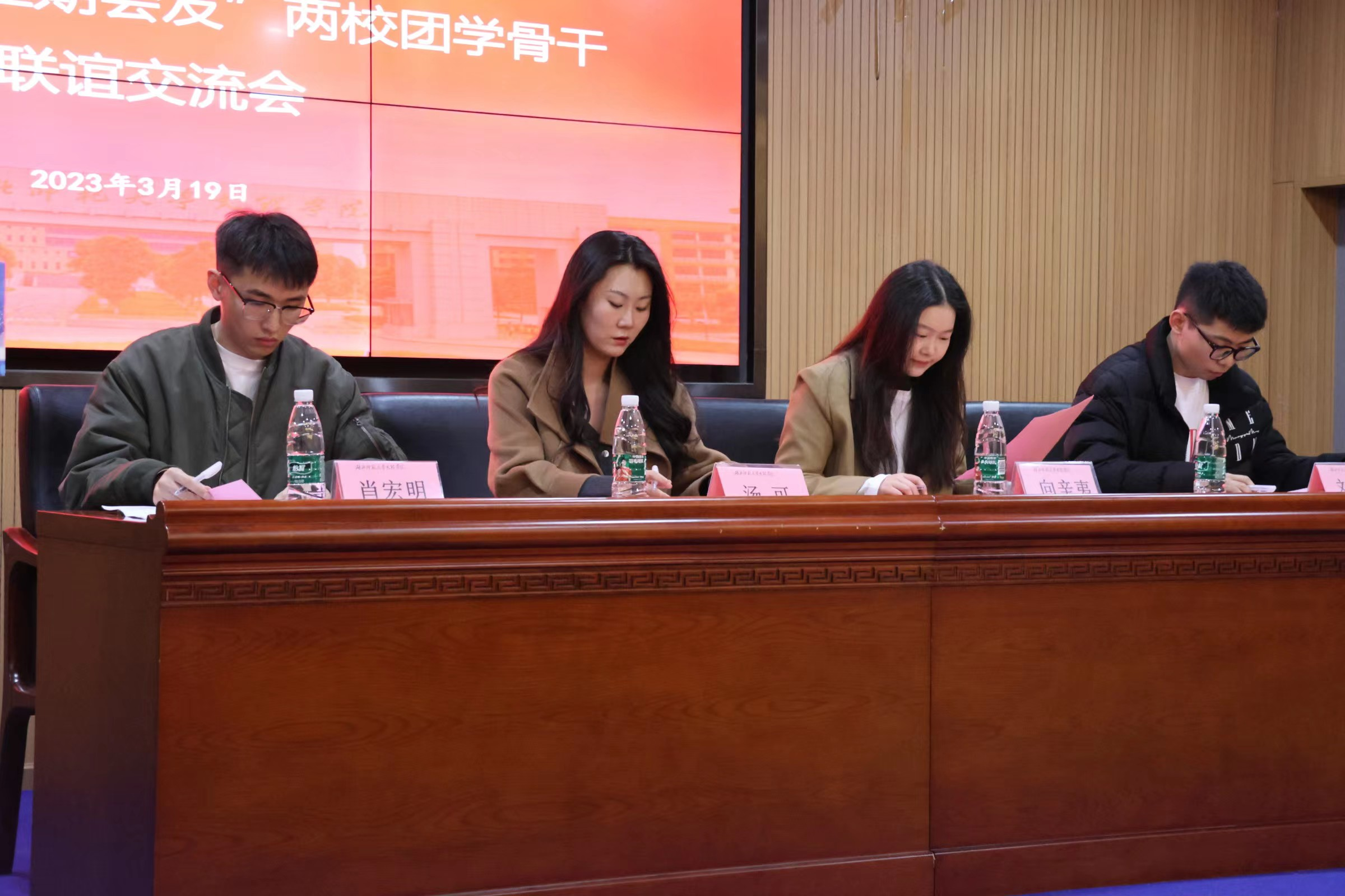 会议最后一项,两校团学干部代表分别作自我介绍和说明工作职能,并于图书馆报告厅、服务中心3楼等四个分会场分别进行经验交流活动,大家就校团组织培养、新闻稿的规范性与严谨性等话题展开讨论,大胆发问,交流心得,规划工作标准及两校未来的团学工作。