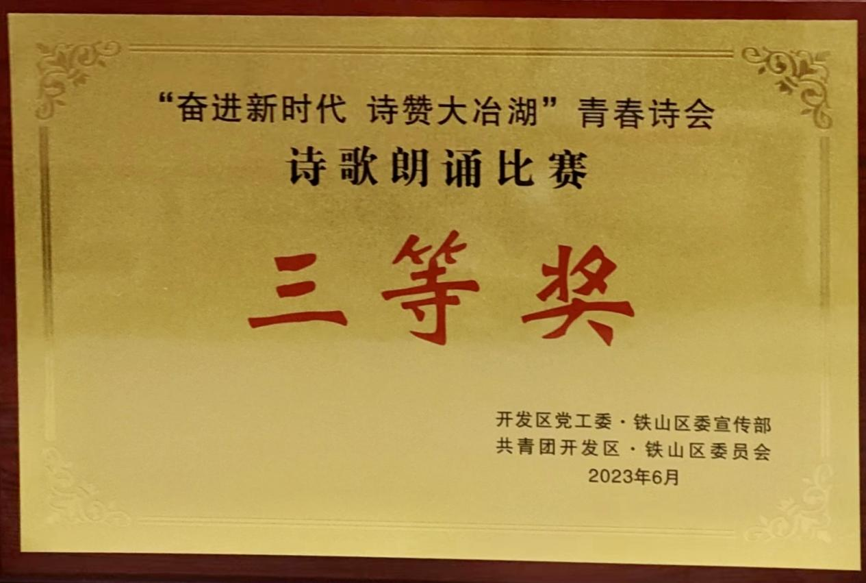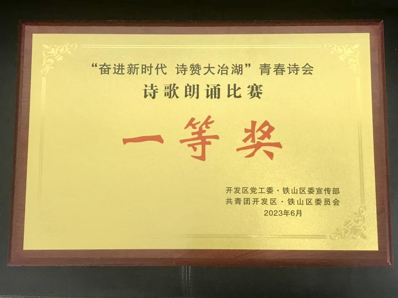 (通讯员:苏祎)青春礼赞,建功时代。6月25日,由开发区党工委·铁山区委、开发区管委会·铁山区政府主办,党工委·区委宣传部、团区委承办的青春诗会朗诵比赛在市展演。在此次活动中,乐鱼网站_乐鱼(中国)参赛作品“青春携诗意,活力漫开铁”诗伴舞和“林茂水美大冶湖”配乐诗分别荣获“一等奖”、“三等奖”。