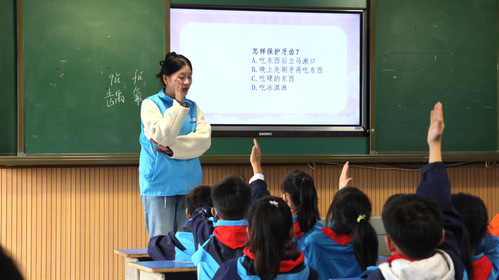 志愿者们通过口腔健康PPT演示、口腔知识问答竞赛、牙齿结构绘画大赛等形式,绘声绘色地介绍了有关儿童牙齿发育的各类知识,生动有趣地向孩子们普及了口腔健康知识,让孩子们在寓教于乐中学会了保护牙齿的方法。