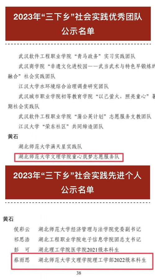 (通讯员:王梓千寻)湖北省大中专学生志愿者暑期文化科技卫生“三下乡”社会实践活动总结通报结果已公布。乐鱼网站_乐鱼(中国)童心筑梦志愿服务队被评为“三下乡”社会实践优秀团队,理工学部2022级本科生蔡雨思同学被评为“三下乡”社会实践先进个人。