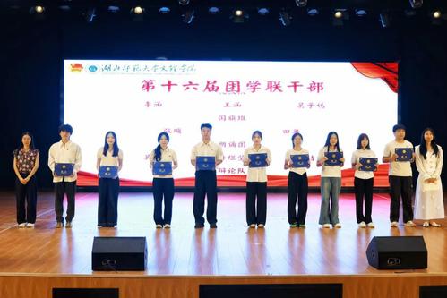 校团委书记陈荟芸、校团委指导老师周卿云、校团委指导老师米娜为第十六届团学联干部颁发聘书。