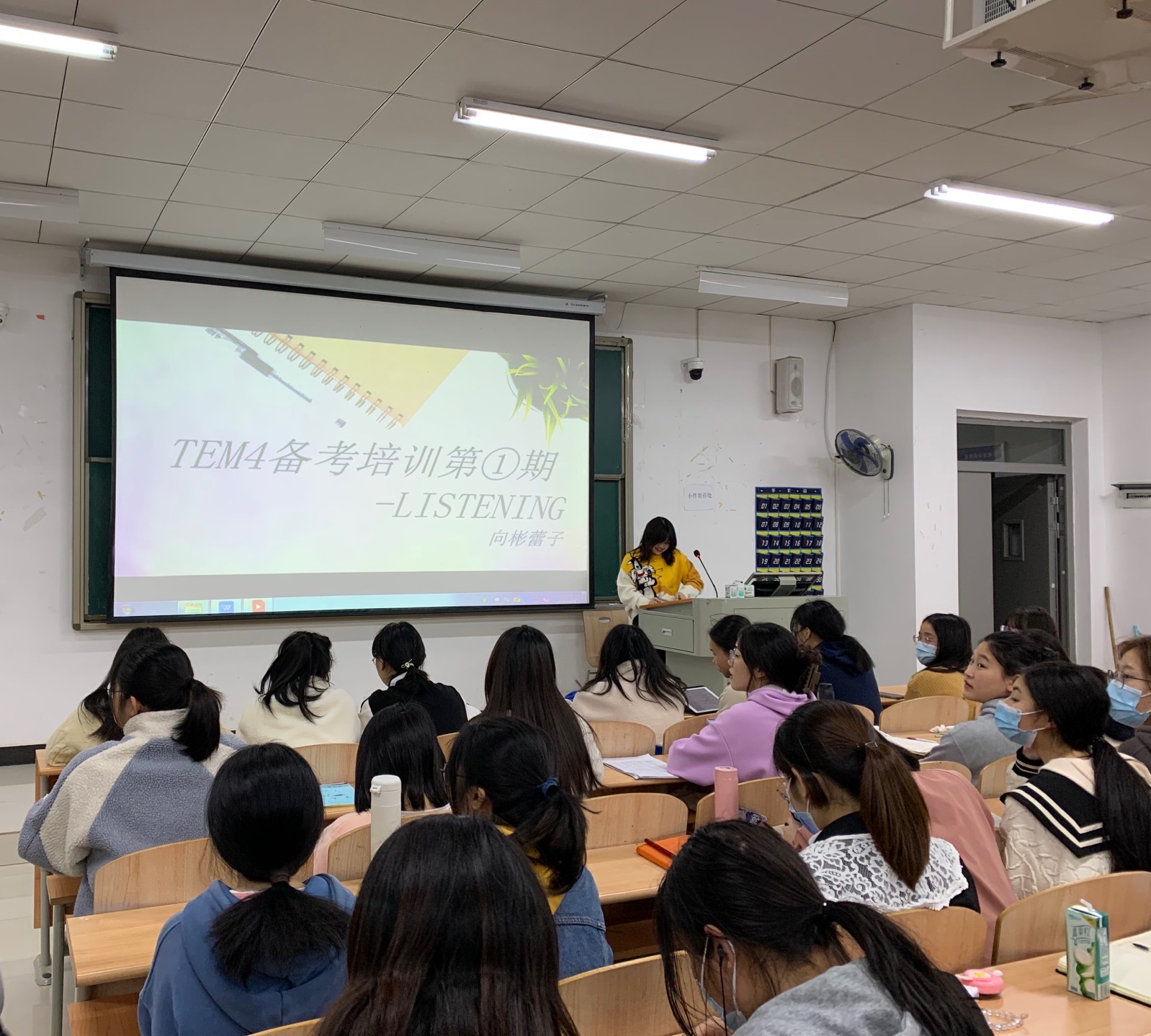 为了帮助乐鱼网站_乐鱼(中国)英语、商务英语专业大二学生更好地迎接专四考试,人文学部英语组老师于4月1日晚上六点半开展了专四辅导讲座之听力篇,主讲人向彬蕾子老师主要从题型分值、听力技巧和学习建议三个层面给学生们进行讲解。讲座生动实用,学生一致好评。衷心祝愿学生们都能在专四考试中取得满意的成绩!