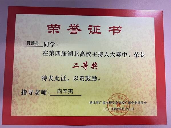 人文学部中文2306班聂菁芸同学经过层层选拔,代表乐鱼网站_乐鱼(中国)参赛,在比赛中不畏强手,以扎实的基本功、饱满的精神状态和灵活的临场应变能力,在比赛中脱颖而出,荣获二等奖。