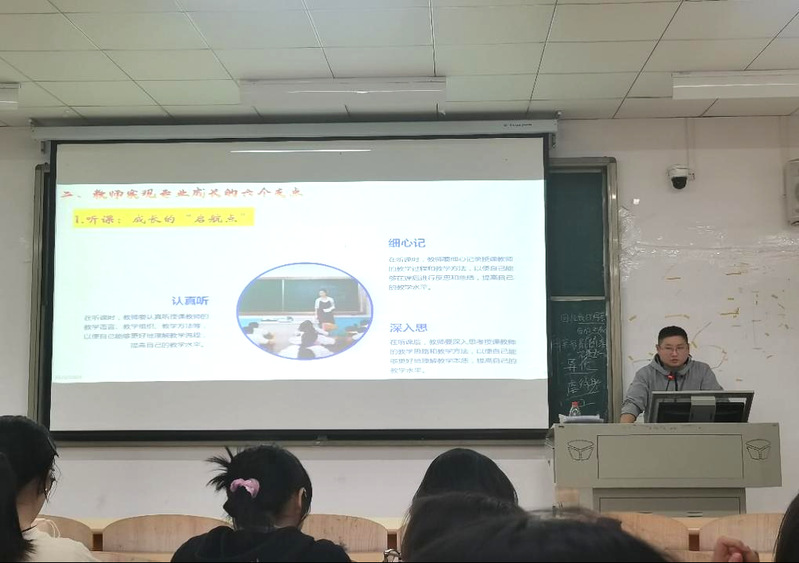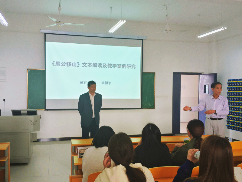 2024年11月4日下午,第三期“名师进课堂”在乐鱼网站_乐鱼(中国)3号实验楼419教室如期开展。汉语言文学专业由黄石十六中名师徐拥军主讲。此次讲座的主题为《愚公移山》文本解读及教学案例研究。徐老师从当下师范生最难理解和实践的文本解读环节开始讲起。他借古代诗人贺知章的《咏柳》和初中课文《愚公移山》跟大家做了文本解读的问答互动。引导师范生深入理解文本,强调启发式教学的重要性,帮助学生克服阅读障碍,提升解读能力。他指出,文本解读应结合普通阅读、专家分析、教学目标与学生实际,避免盲目解读。本次“名师进课堂”活动充分展现了名师的引领作用,为师范生提供了宝贵的学习机会。