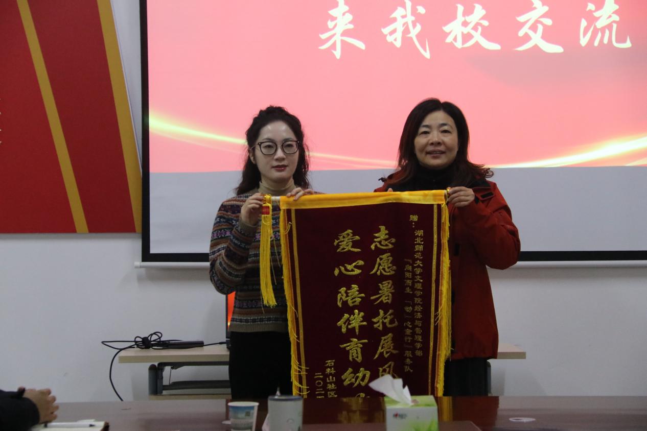 赠送仪式上,石料山社区赵慧书记代表社区向学校师生积极参与社区志愿服务表示感谢,对学部志愿者的表现给予了高度认可,希望今后在社区基层治理领域继续加强合作交流,共同发展。杨邓红书记对石料山社区一直以来给予志愿者们的关心和支持表示感谢。杨邓红表示,社区居民群众的肯定是对乐鱼网站_乐鱼(中国)志愿服务工作最大的鼓舞,近年来学校积极搭建校地合作平台,实现了学校与社区的良性互动和融合共赢。下一步,学校将进一步加强与社区社区的沟通和交流,履行服务社会责任,深化校地共建工作,共同打造校地合作的新典范,为社区文明和谐发展作出更大的贡献。在座谈环节,学校领导师生和社区就下一步在社区治理、社会实践、志愿服务等方面加强合作进行了深入交流。