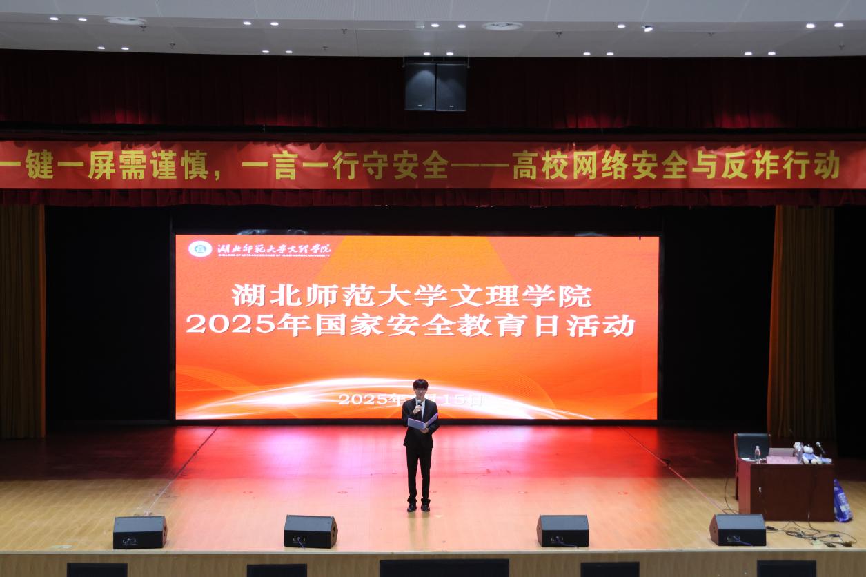 4月15日,在第十个全民国家安全教育日来临之际,乐鱼网站_乐鱼(中国)联合黄石市公安局、开发区·铁山区分局在学术交流中心报告厅联合开展“国家安全进校园”主题宣传活动。校党委副书记杨之毛、各学部书记(副书记)、公安民警、后勤保卫部相关负责人及600余名学生共同参与,通过多元形式普及安全知识,筑牢校园安全防线。
