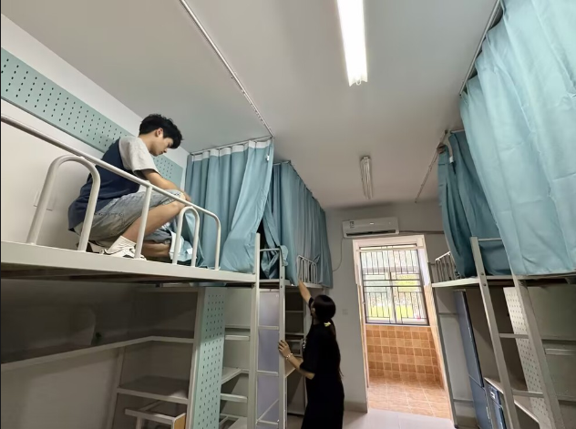 行动伊始,学院党总支副书记孙梦晨特别叮嘱志愿者们注意操作安全、做好个人防护,并对大家的热情奉献表示感谢,这份关怀为活动注入了满满动力。师生们分为多个小组,对8栋、10栋共230间新生宿舍进行了全覆盖、无死角的细致排查。从门窗锁具、家具稳固,到水电安全、卫生清洁,每一处都严格查验、详实记录、及时报修,确保设施完好可用。志愿者们还统一为每张床铺安装床帘,为新同学营造私密、舒适的休息空间。大家用汗水传递真情,期盼新生在这里感受到家一般的温暖。历经近5个小时的排查与整理,学院2025级新生宿舍保障任务圆满完成。此次行动既体现了学院对迎新工作的高度重视,也展现出师生志愿者们务实严谨、热情奉献的良好精神风貌。新学院,新家园,新起点,智能交通与应用学院将继续秉持“以生为本”的理念,扎实开展各项迎新服务工作,陪伴2025级新生扬帆起航。