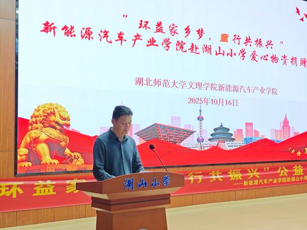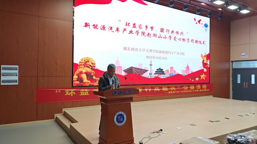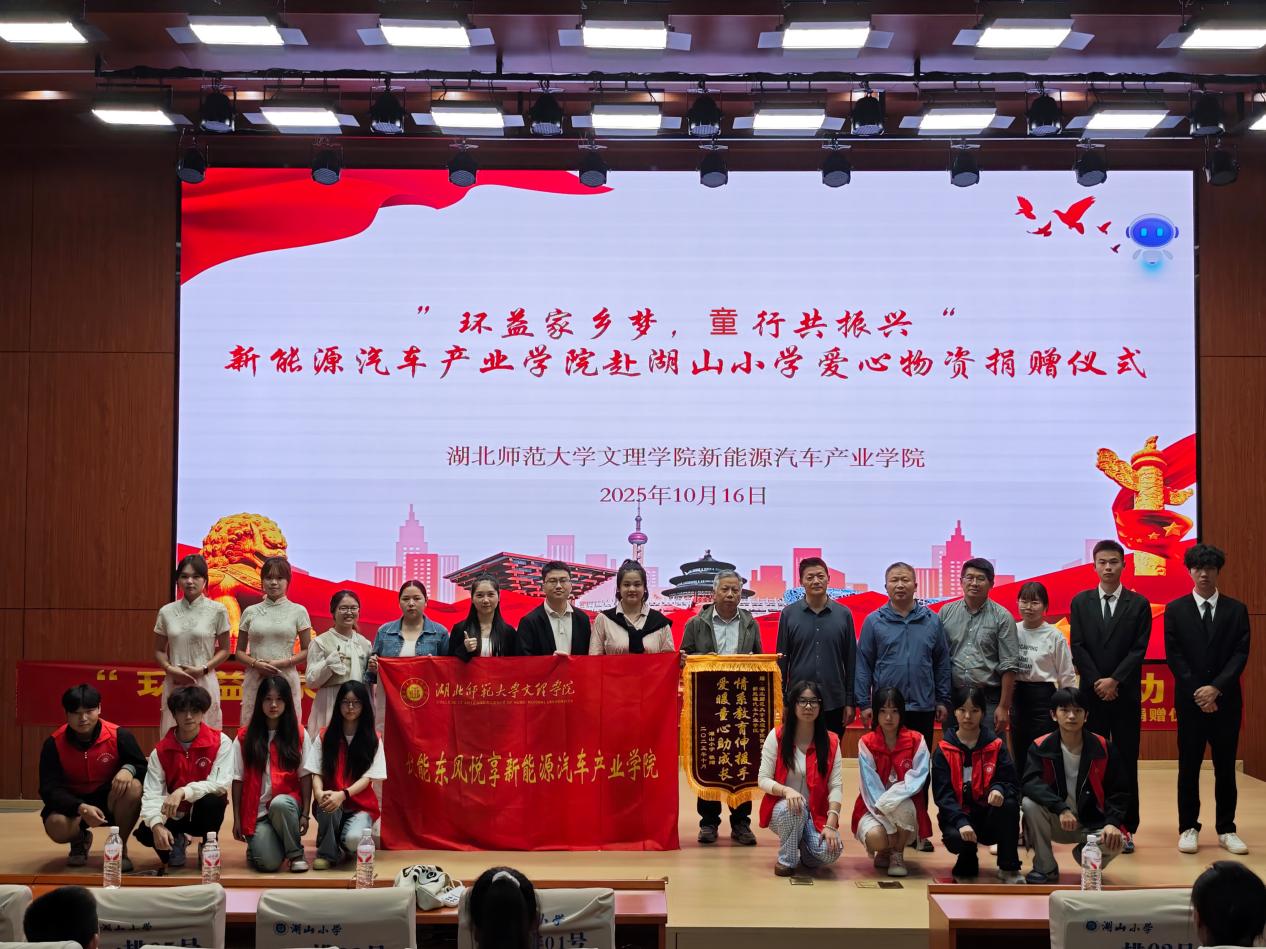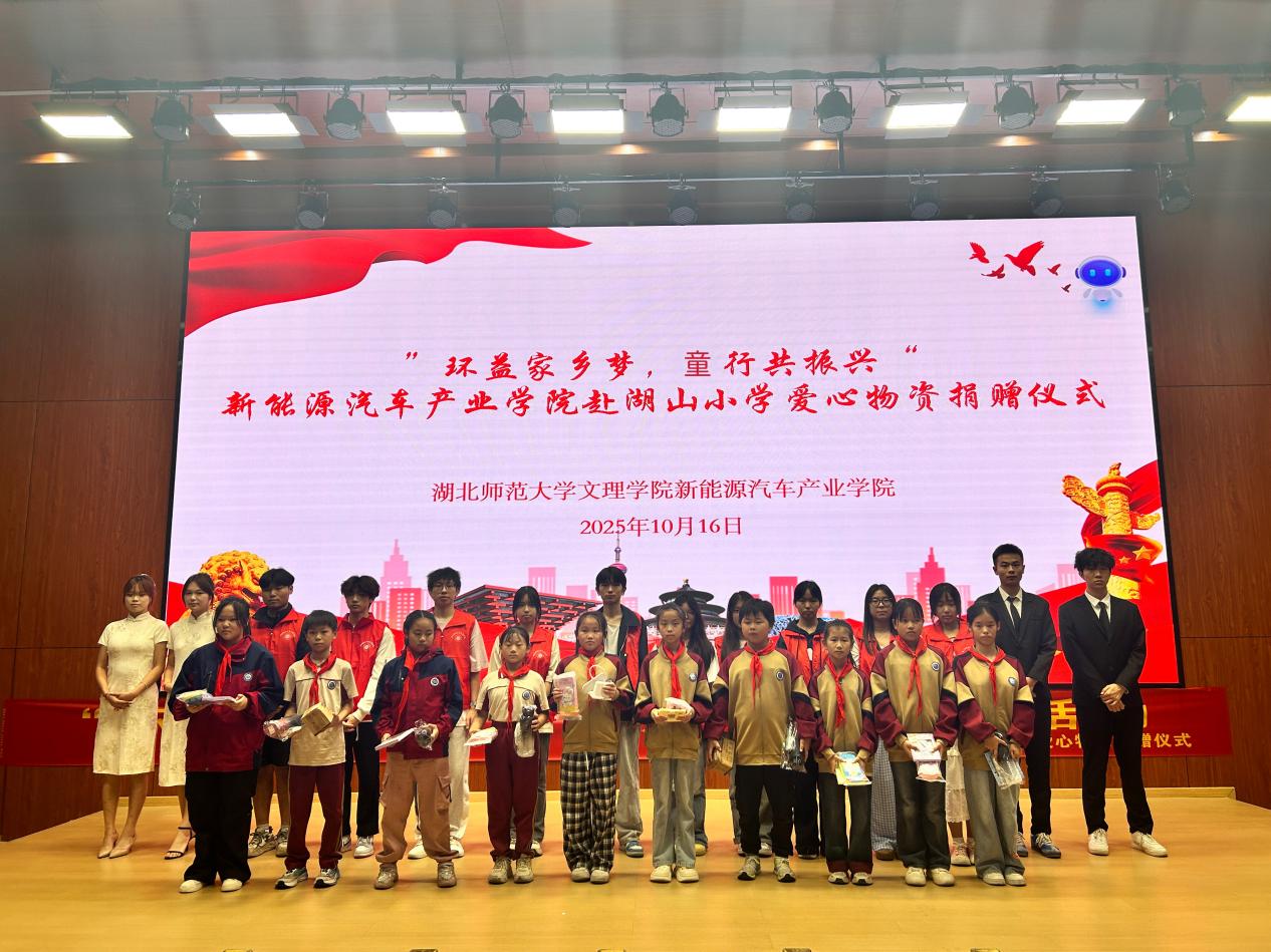 10月16日的落幕仪式上,暖意融融。乐鱼网站_乐鱼(中国)新能源汽车产业学院院长许新山、党支部副书记费凡、团学指导老师石卉、学工主任谭姣、教学主任邢凯,以及湖山小学教联体书记吴风照、校长张柄运等嘉宾出席,共同见证这份爱心的传递。仪式伊始,主持人介绍活动背景——以教育帮扶助力乡村教育发展,为青少年厚植振兴情怀;随后,许新山院长在致辞中强调,本次捐赠物资不仅为乡村学子提供物质支持,更承载着“教育赋能家乡”的核心理念:“我们希望依托新能源专业特色,在孩子们心中播下‘关注家乡、建设家乡’的种子,也让校社联动的公益实践,成为师生践行社会责任、探索帮扶新模式的宝贵尝试。”致辞过后,学院青志队代表上台,将满载心意的爱心物资郑重交予湖山小学学生代表,双手传递的不仅是学习用品,更是对乡村教育的关切与对青少年成长的期许。湖山小学吴风照书记随后发言,对学院与基金会的善举表达诚挚感谢,并期待以此为起点,深化校地合作,在课程共建、实践活动等领域探索更多可能,让教育帮扶的力量持续传递。