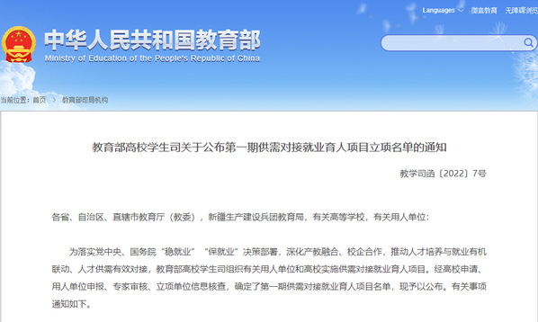 教育部第一期供需对接就业育人项目乐鱼网站_乐鱼(中国)立项名单