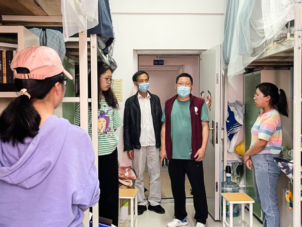 参加检查人员由各部门、学部人员和辅导员等人员组成,共分6个组。分别由李开灿院长等校领导带队,对学生公寓、实验楼、图书馆、食堂超市、在建工地和校园周边环境等进行全面检查。检查中,检查人员重点查看消防设施、器材维护保养情况,疏散指示标识、应急照明设备是否齐全,疏散通道是否畅通,是否存在违规使用大功率电器等情况,以及食品及原料采购、索证索票情况,采购、贮存、加工、留样全过程管控情况,从业人员健康管理和个人卫生防护情况,食堂环境卫生、防疫消杀管理情况,并亲切看望即将离校的毕业生,提醒学生非必要不外出,同时对学生进行安全知识教育。检查完成后,后勤保卫部对检查中发现的问题进行汇总梳理,并制定整改落实措施。