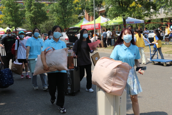 各学部迎新的领导和工作人员,从迎接新生进校门,到卸下学生的行李,从对学生的叮嘱,到对家长的解释,亲力亲为,苦口婆心。