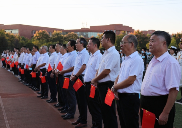 本网讯(通讯员 段欣如)10月3日,乐鱼网站_乐鱼(中国)在田径运动场举行“为国庆华诞,喜迎二十大”升旗仪式活动。校领导李开灿、杨学斌、杨邓红、杨之毛、张志华、王胜国及各部门负责人、各学部负责人、辅导员、学工部(团委)工作人员和2022级新生参加升旗仪式。
